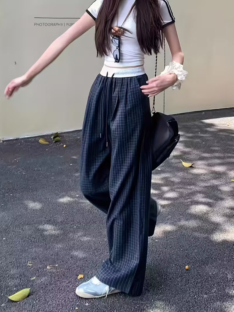 Embrace effortless elegance with our Non-Stretch Trousers. The sophisticated navy & black grid pattern elevates your casual to everyday formal wear, while the comfortable drawstring waist ensures all-day ease.
